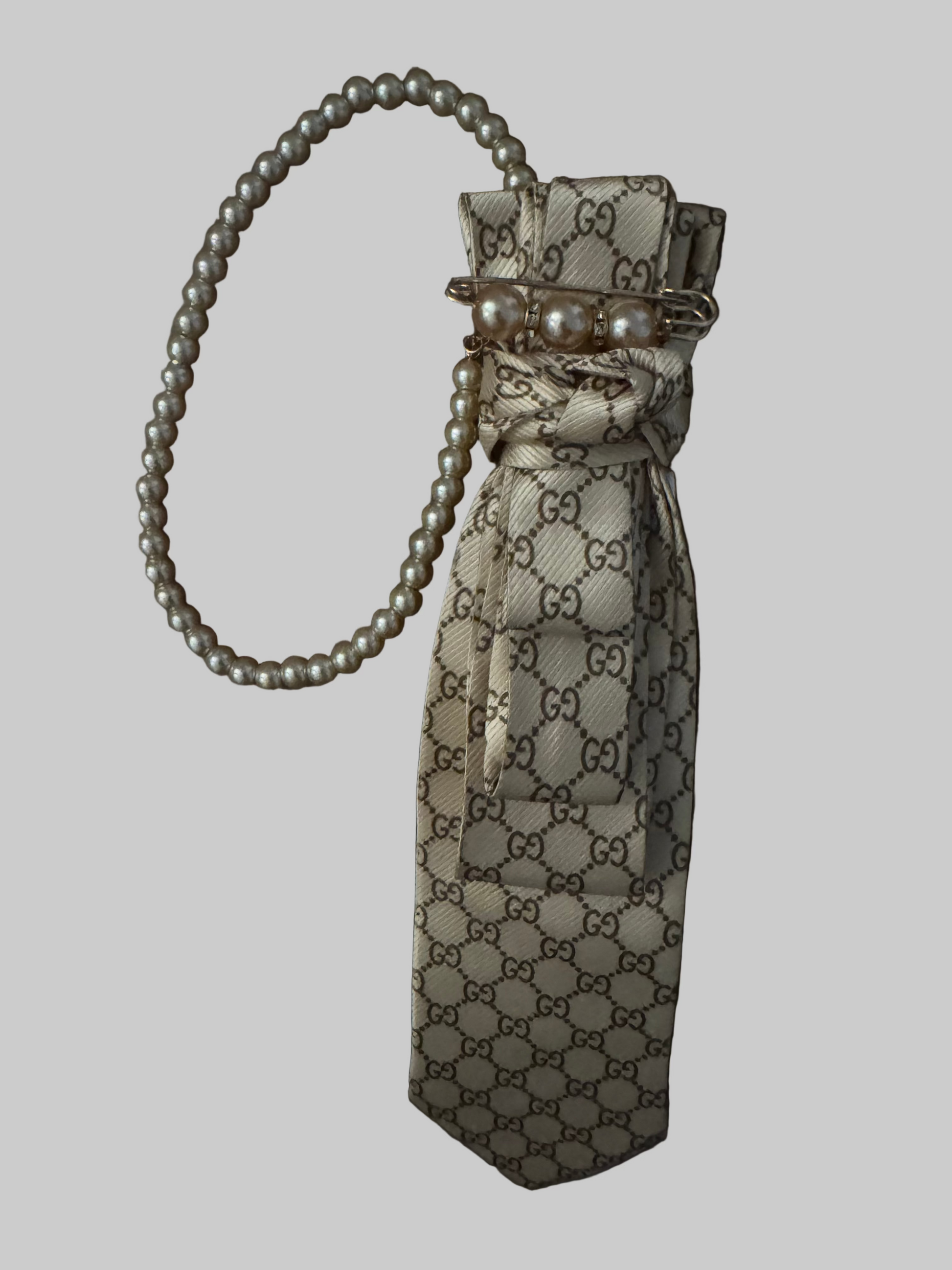 This tie adds the perfect touch of charm and style. The pearls and pin are fully removable, giving you the flexibility to pair it with your own necklace or accessorize with any pin or brooch you choose.