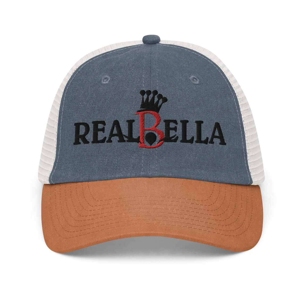 - Pigment-dyed twill front, mesh back